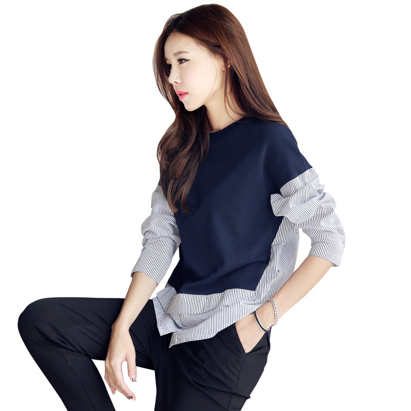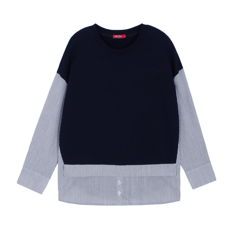 韩都衣舍2017韩版女装春装新款条纹显瘦百搭宽松v领七分袖衬衫潮 领券立减/单件包邮/七天无理由退换